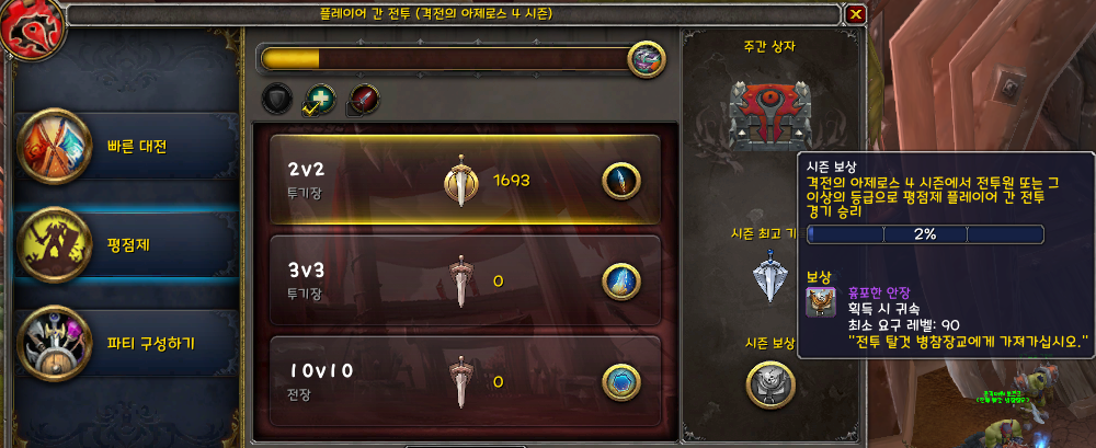 - 2v2 건 3v3 이건 자신의 평점이 1400점을 달성한 순간부터 퍼센트 게이지가 올라간다.
